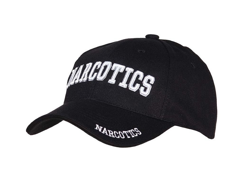 - Vyšívaný text "NARCOTICS" bielou niťou na čelnej strane, šiltu a zadnom pásiku.