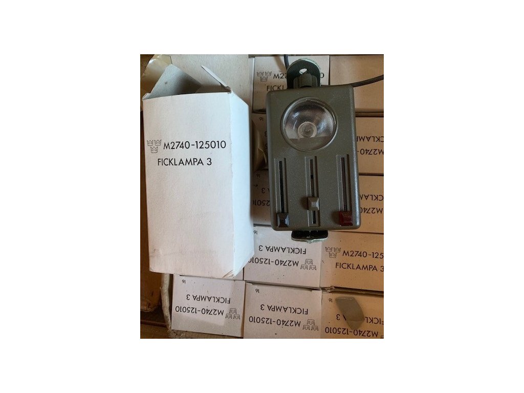 Tieto bývalé švédske armádne „Ficklampa 3“ alebo svietidlá typu Flashlight 3 boli malé plastové svietidlá, ktoré dostával všetok poľný personál. Podobne ako nemecké svietidlá z 2. svetovej vojny, jedná sa o plastovú obdĺžnikovú krabičku s rozmermi približne 124 mm x 68 mm x 45 mm. Na prednej strane je šošovka s tromi posuvnými gombíkmi, ktoré filtrujú lúč svietidla z bielej na červenú, zelenú alebo zatemňovaciu. Ak chcete prepnúť lampu na stály lúč, otočte gombík z polohy 6/12 hodín do polohy 9/3 hodiny. Otočte gombík do polohy 8/2 hodiny a stlačte pre funkciu blikania „morzeovky“. Svietidlo sa otvorí stlačením bočného tlačidla a vytiahnutím prednej strany sa odhalí priestor pre 2 batérie veľkosti C, šošovka a náhradná žiarovka. Na zadnej strane je kombinované 65 mm pútko na opasok a dve kožené pútka na gombíky na pripevnenie ku gombíkom tuniky. Svietidlá sú použité a môžu mať drobné škrabance atď, ale je zaručené, že sú plne funkčné.