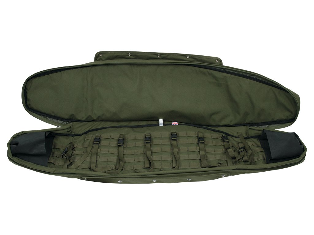 Univerzálne zbraňové puzdro od renomovanej anglickej značky Berghaus na nosenie zbraní dlhých až 130 cm, vrátane doplnkov a puškohľadov. Puzdro DRAGBAG je súčasťou novej rodiny produktov typu SMPS (Special Mission Pack System), špeciálne vyvinutej pre potreby profesionálnych vojakov a špeciálnych jednotiek.