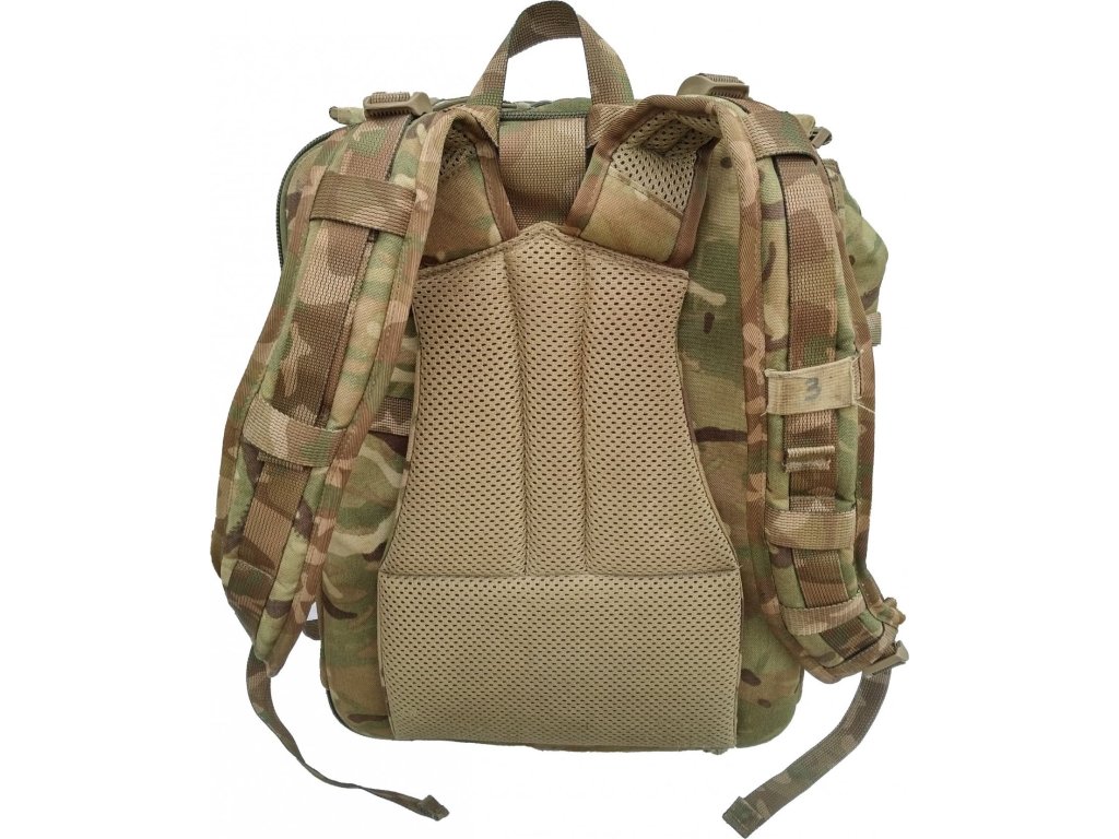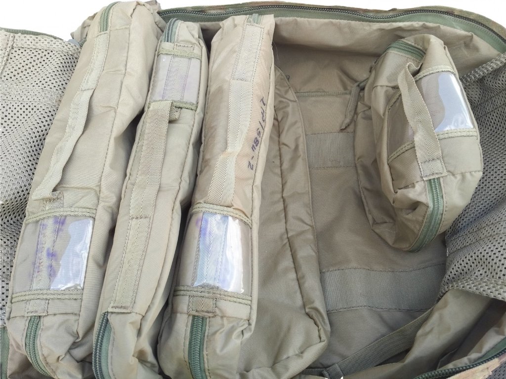 Batoh má molle väzbu z prednej strany a bočných strán. Na boku sú zipsy, na ktoré možno pridať bočné veľké vrecká (nie sú súčasťou batohu). Predné menšie vrecko. Na prednej strane velcro panel na suchý zips. Vnútri dve sieťované vrecká. Súčasti batohu sú rôzne vrecká, inej veľkosti, vrecká v batohu drží pomocou suchého zipsu.