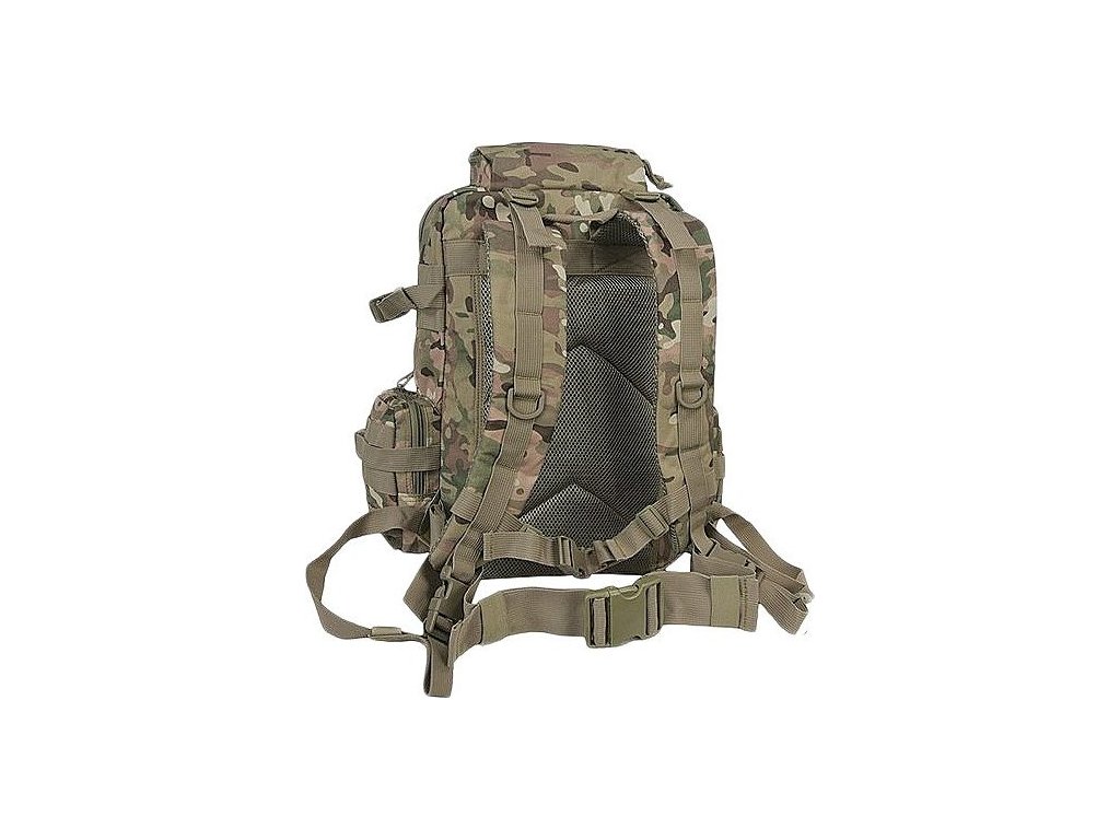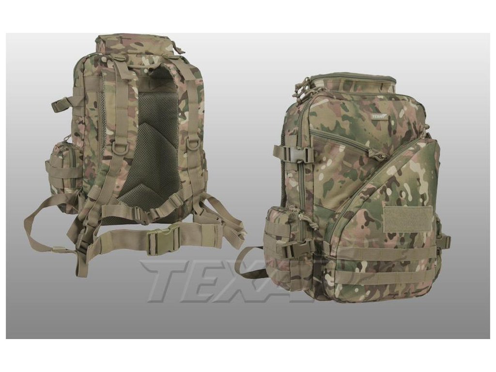 - na ľavej i pravej strane batohu sú celkom 4 nastaviteľné popruhy so zapínaním na plastovú sponu slúžiace na pripevnenie príslušenstvo
