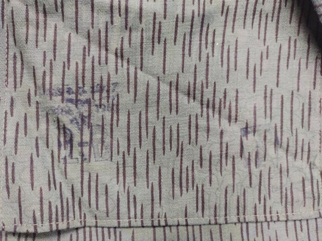 - Vzor: Maskovací vzor "ihličie", ktorý sa skladal zo šedozelenej tkaniny s tmavo hnedými až čiernymi čiarkami.