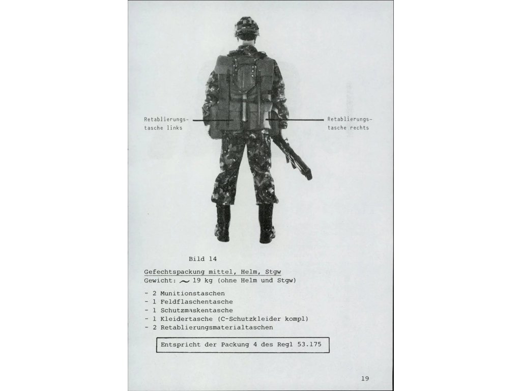 Kampfanzug 57/70 bol vydávaný od roku 1957 do roku 1993 (po roku 1970 s textilným batohom) a ľahší TAZ 83 s iným vzorom od roku 1983 do roku 1993 pre nebojové jednotky, než boli oba nahradené TAZ 90.