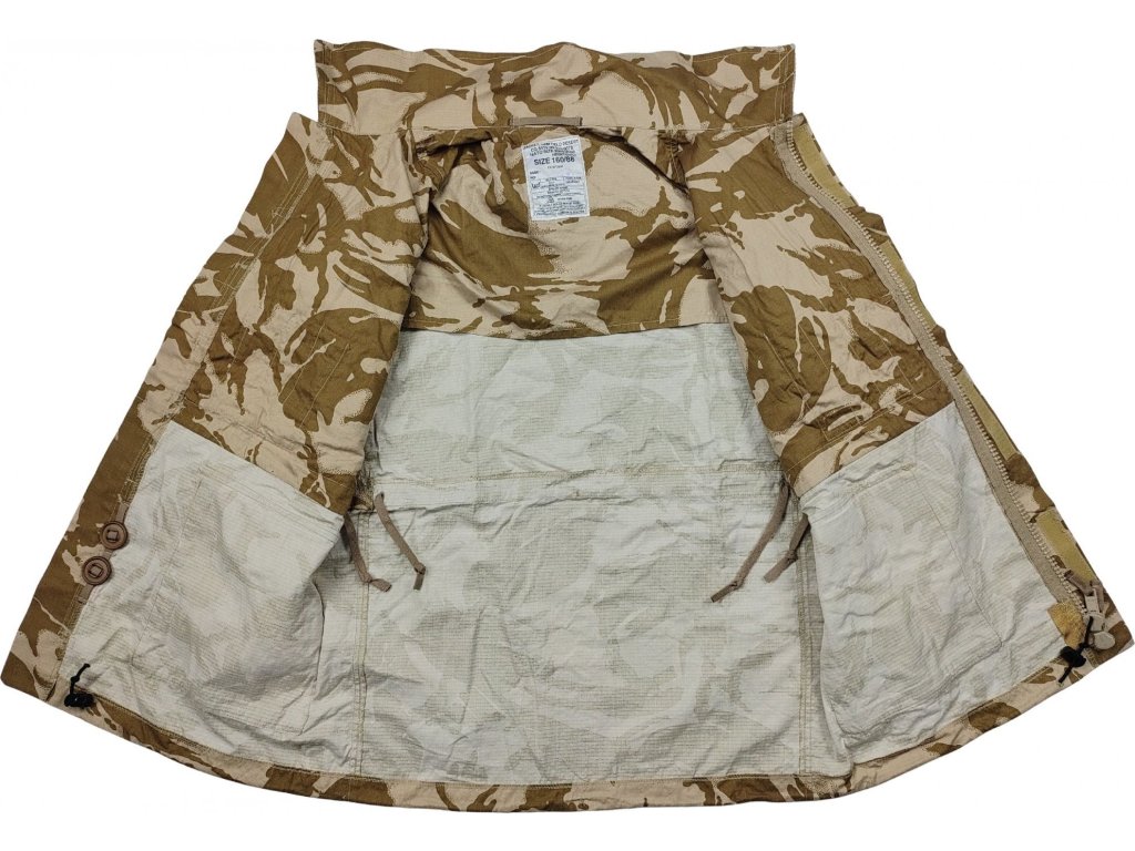 Originálna britská vojenská bunda v púštnej kamufláži Desert DPM, ktorú používa Kráľovská armáda Veľkej Británie. Táto poľná bunda je vynikajúca pre vonkajšie a náročné podmienky. Vyrobená z odolnej bavlnenej zmesi s RipStopovou úpravou. Odolná vojenská bunda navrhnutá na boj a všestranné použitie. Je bez podšívky a má priestranný strih, ideálny na vrstvenie ako súčasť odevného systému britskej armády.