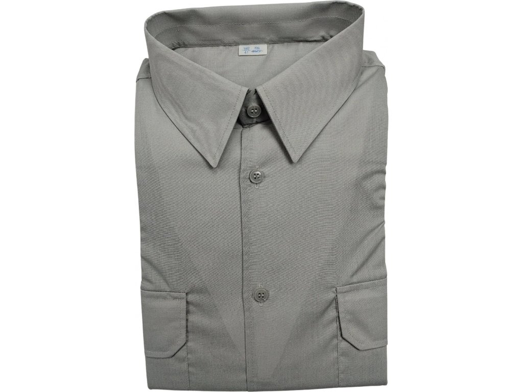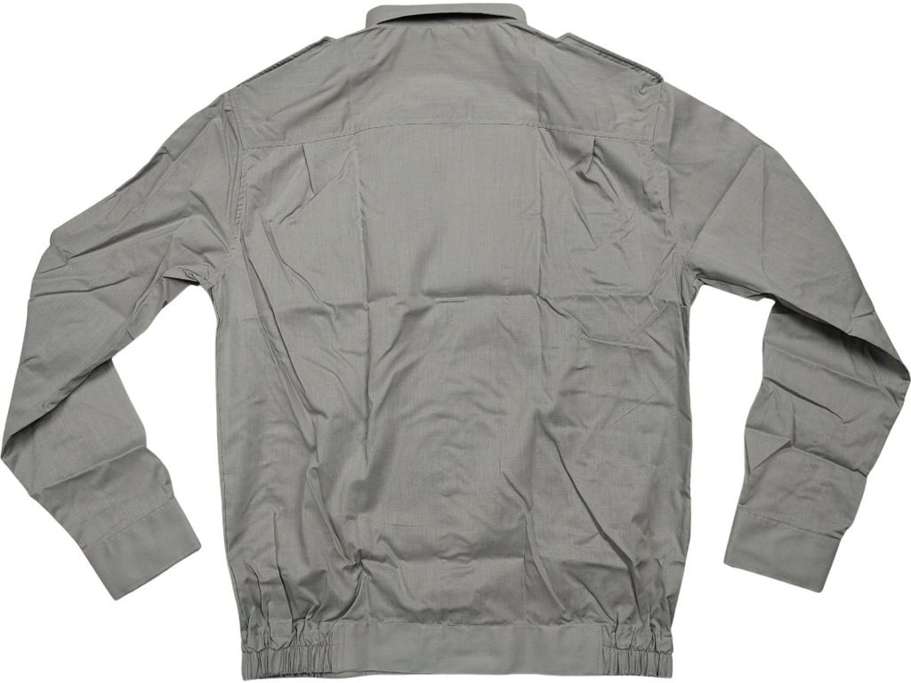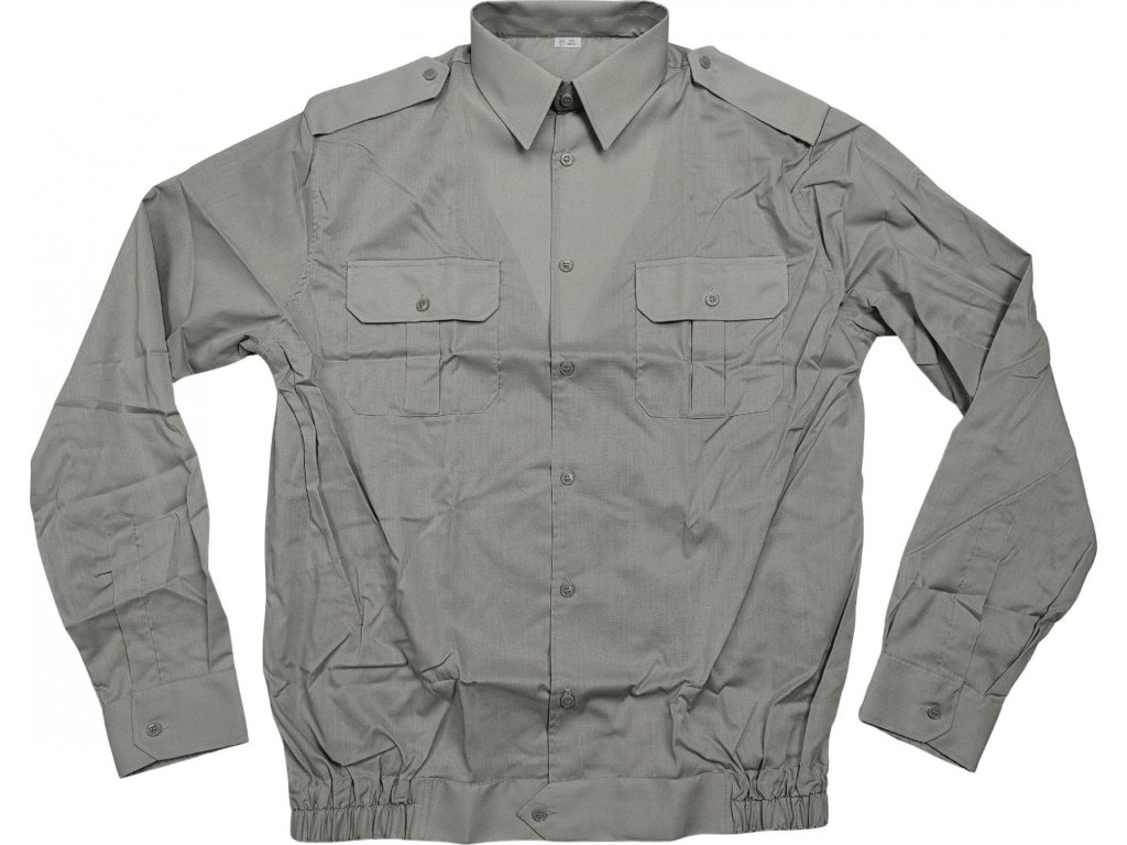 Originálna krátka košeľa do pása s dlhým rukávom a stojacím golierom, takzvaná bundokošeľa (bundoška či bunda IKE) v šedej farbe, pochádzajúca z výstroja bulharskej armády.