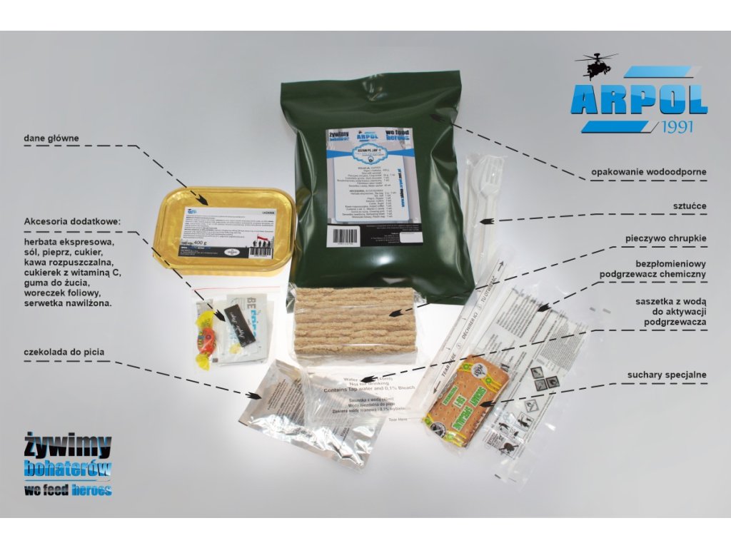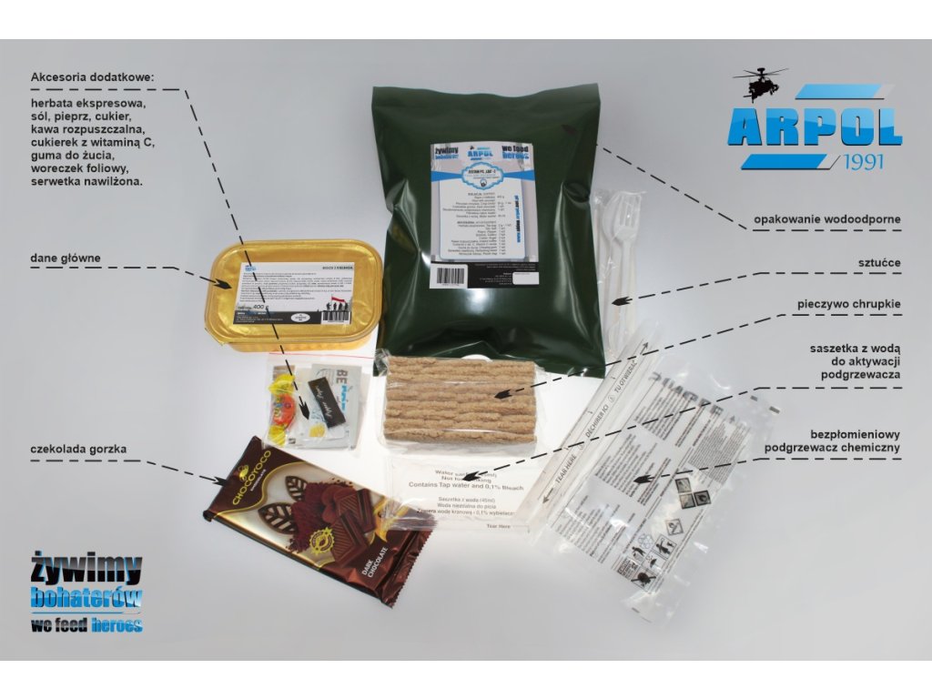 - Bojová potravinová dávka jednotlivca inšpirovaná vybavením vojaka poľskej armády WP (Wojsko Polskie).