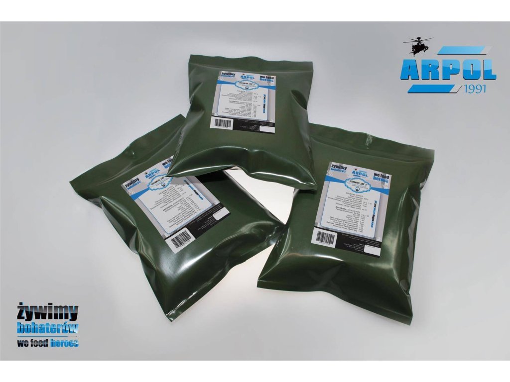 Inšpirovaný americkým vojenským prídelom individuálneho balíčka US MRE. Poľský variant prídelu potravín s vlastným bezplamenným ohrevom, vrátane vrecka potrebnej vody (45 ml) na jeho aktiváciu. Bezplamenný ohrievač americkej výroby je na báze jednoduchej chemickej reakcie na zabezpečenie dostatočnej teploty pre ohriatie jedla.
