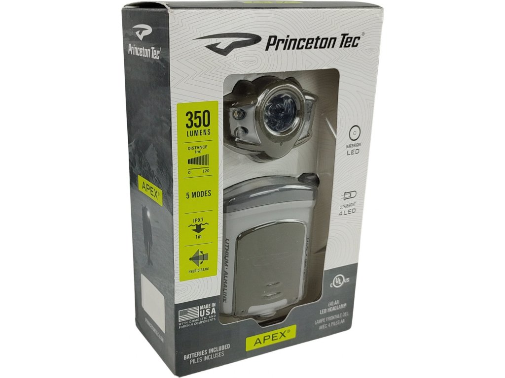 - Princeton Tec ® APEX ™ 350 Lumen IPX7 Led Headlamp, 5 Modes, 120 Meters Distance, Hybrid Beam (APX16-OD).