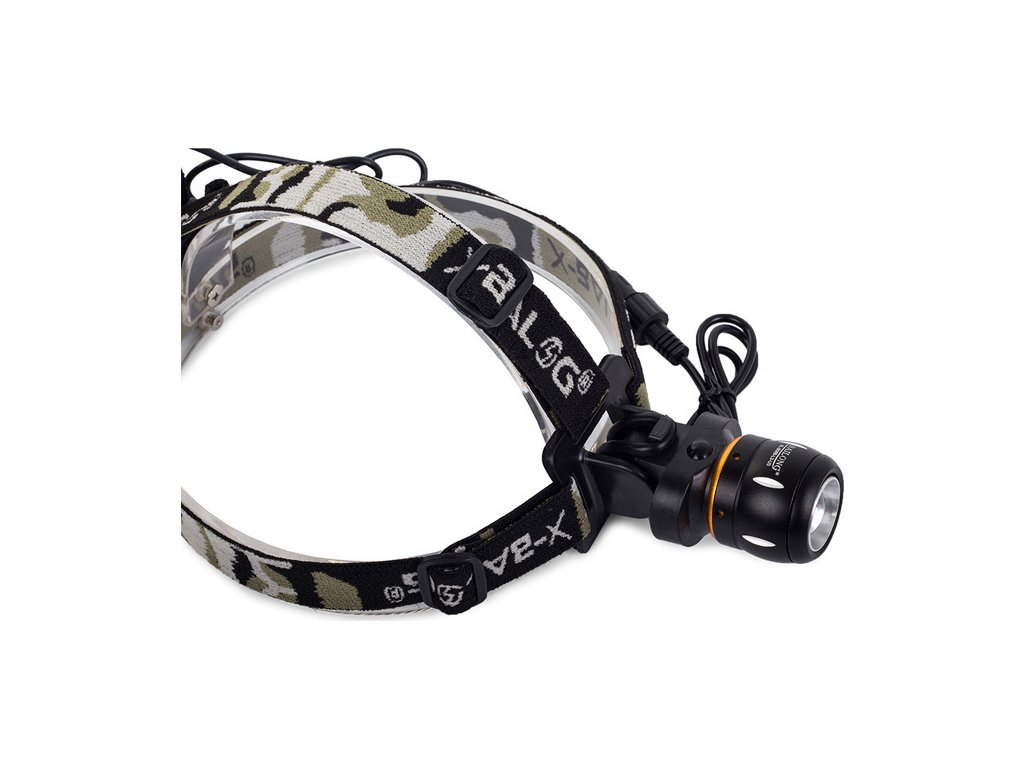 Ľahká a praktická konštrukcia zaisťuje stabilitu a zabraňuje skĺznutiu svietidla z hlavy. Je tiež vybavená dvoma elastickými, nastaviteľnými popruhmi a dobíjacou batériou, ktorá sa pripája k svietidlu a upevňuje sa na zadnú stranu hlavy. Svietidlo je napájané vysoko kvalitnými lítium-iónovými batériami/článkami 18650, ktoré zaisťujú dlhú výdrž batérie.