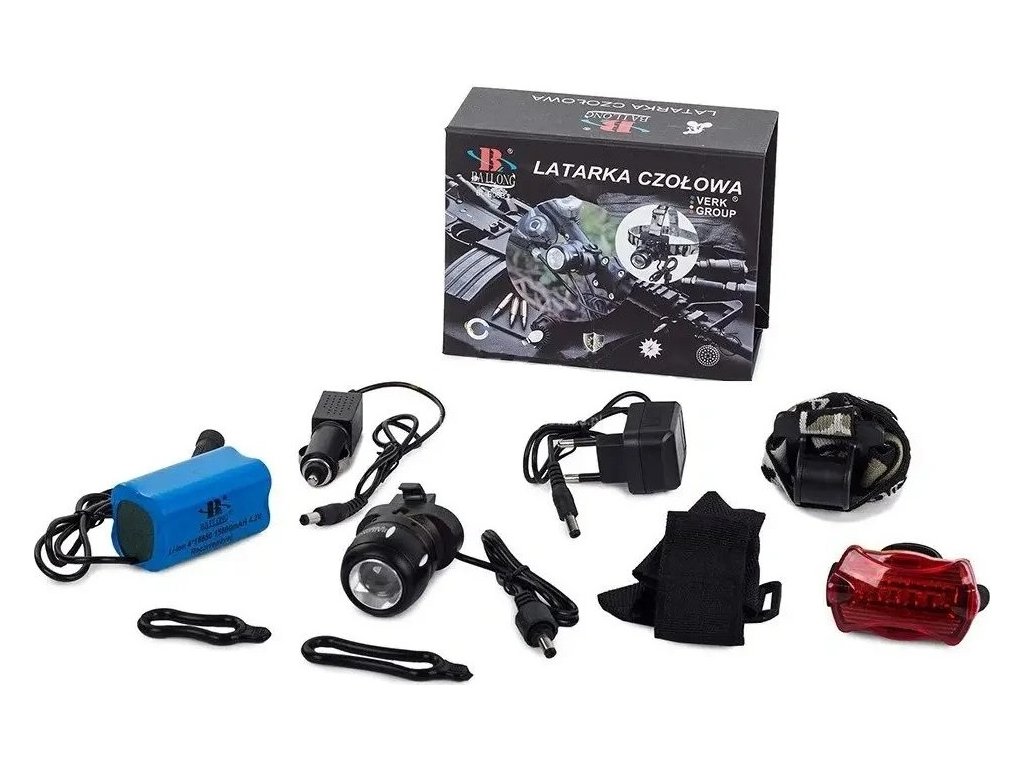 Predný aj zadný LED svetlomet s príslušenstvom na bicykel Bailong® (B06B) Cree Zoom multifunkčné taktické čelové svietidlo nabíjacie - čelovka vrátane batérií