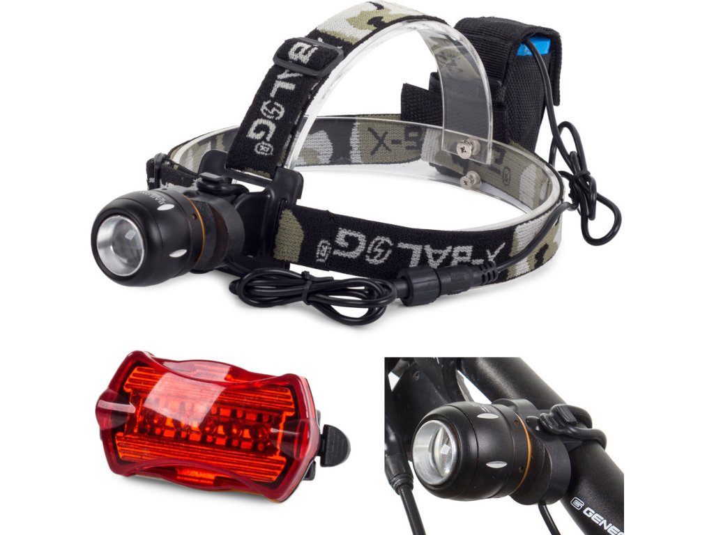 Čelovka LED sada osvetlenia na bicykel predný aj zadný s príslušenstvom Bailong® B06B