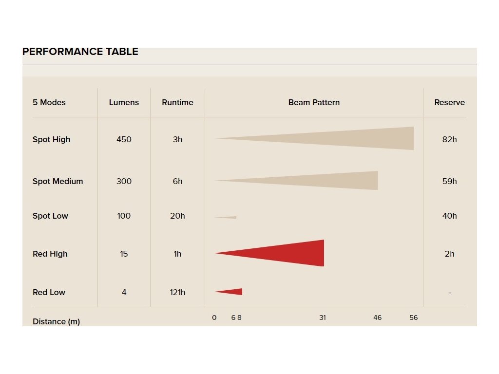 - biela LED silný (3 hodiny, 56 metrov)