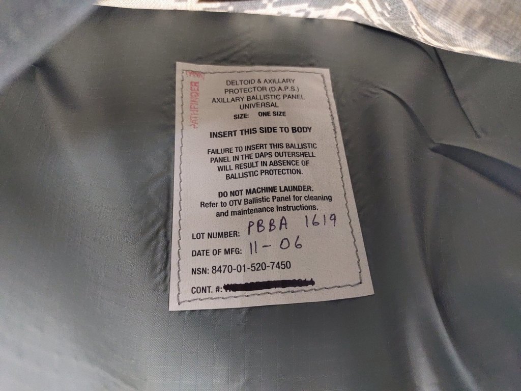 Originálny balistický chránič deltového svalu a podpazušia (DAPS - Deltoid & Axillary Protector) od výrobcu Point Blank Body Armor , ktorý bol používaný americkou armádou. Je navrhnutý tak, aby poskytoval dodatočnú ochranu ramenám a podpazušie vojaka, a pripevňuje sa k balistickej veste, ako je napríklad IOTV (Improved Outer Tactical Vest) alebo Interceptor.