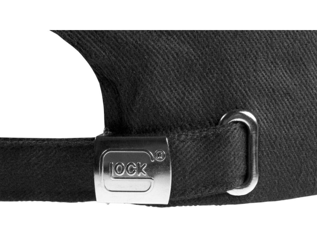 - Univerzálna regulovateľná veľkosť - zapína sa v zadnej časti pomocou pásky, zaisteného hliníkovým klipom, ktorý je navyše opatrený štýlovým logom Glock® Perfection.