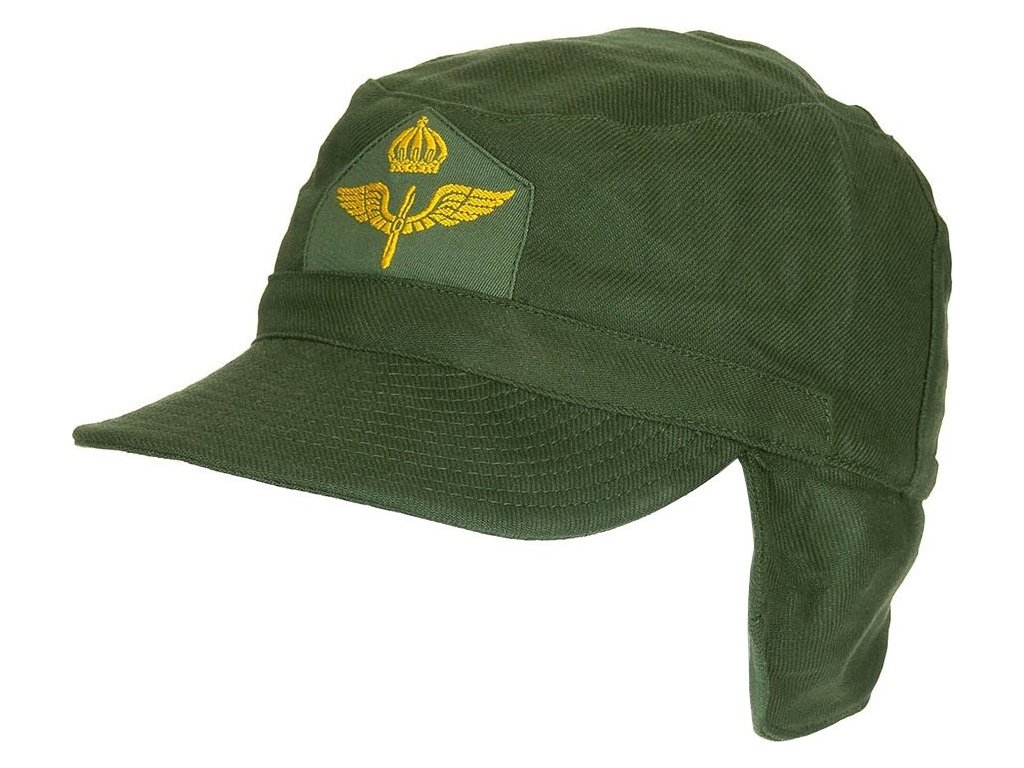 - Vojenská letecká čiapka, ušianka do veterného a nepriaznivého počasia, k uniforme vojaka ozbrojených vzdušných síl Kráľovskej armády Švédska.
