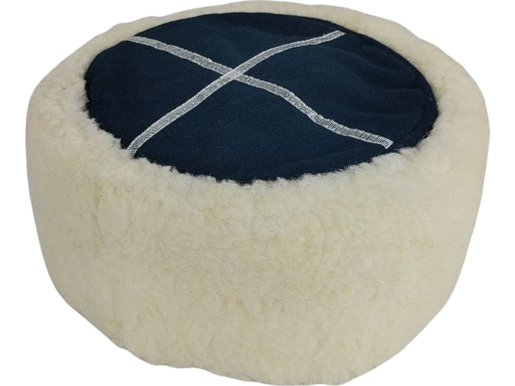 Vrchná časť: Modrý, plochý vrchol je vyrobený z prírodnej vlny.