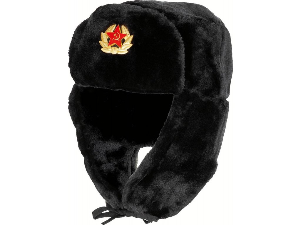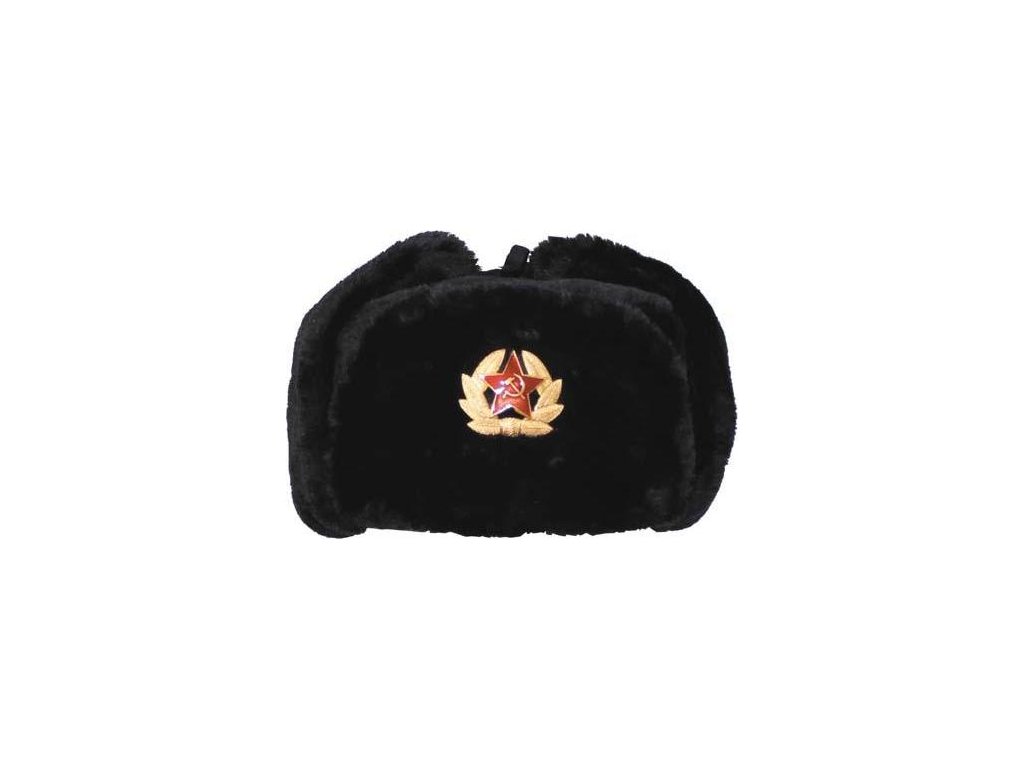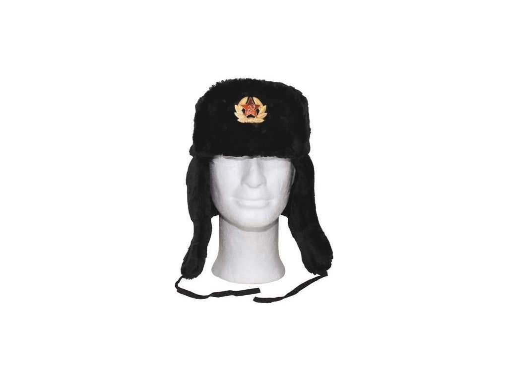 - Russian Fur Hat Black s odznakom.