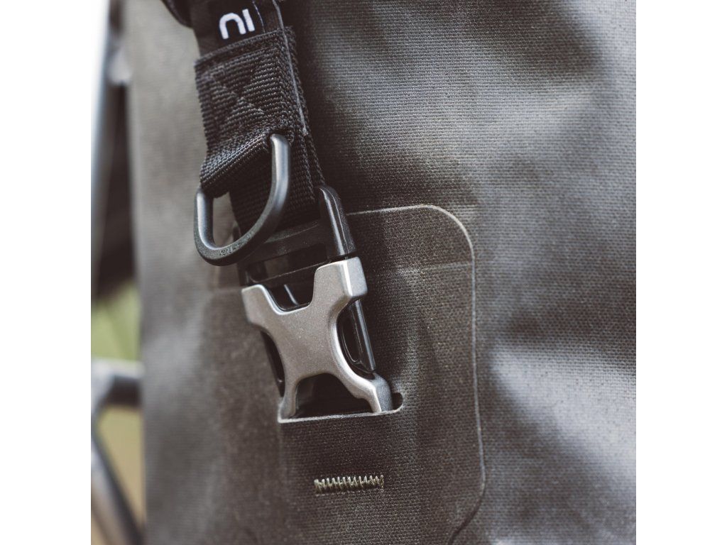 Utiahnutie popruhov drží v akomkoľvek počasí (teplom aj chladnom) vďaka sponám z kombinácie hliníka a plastu (vonkajší diel je z kovu a chráni plastový diel, ktorý je zacvaknutý dovnútra). |Upevnenie systémom „one click“ umožňuje nacvaknúť tašku na nosič jediným pohybom.