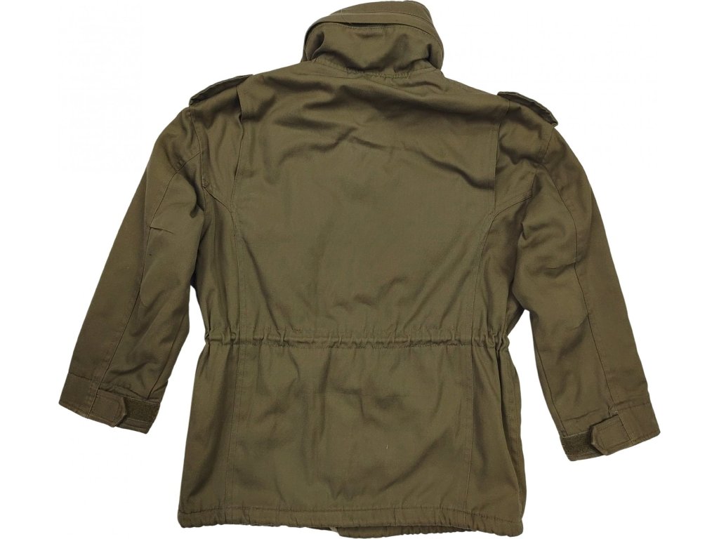 - Dizajn a materiál:Bunda je vyrobená v jednofarebnom olivovo zelenom prevedení z odolnej polybavlny (65% polyester, 35% bavlna), s bavlnenou vnútornou podšívkou a polyesterovou výplňou pre tepelnú izoláciu.