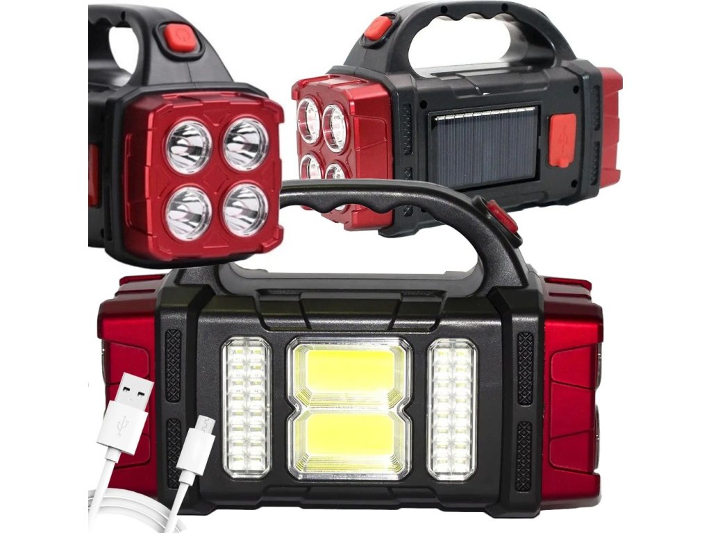 Svietidlo dobíjacie COB LED so solárnym nabíjaním a powerbankou 25W Hurry-Bolt® (HB-2678) červená
