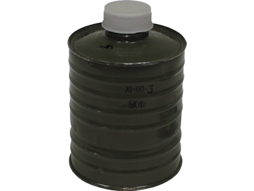 Originálny valcový filter určený pre ruské plynové masky. Tento typ filtra bol súčasťou štandardnej výstroje a je typický svojim kovovým valcovým prevedením.