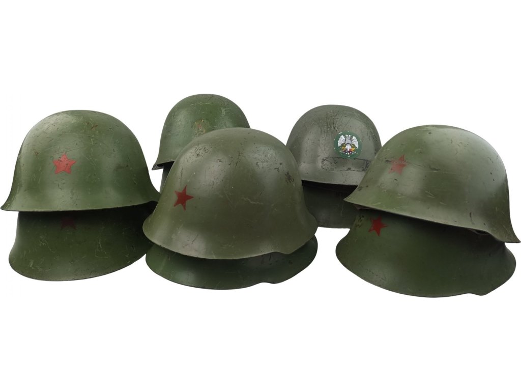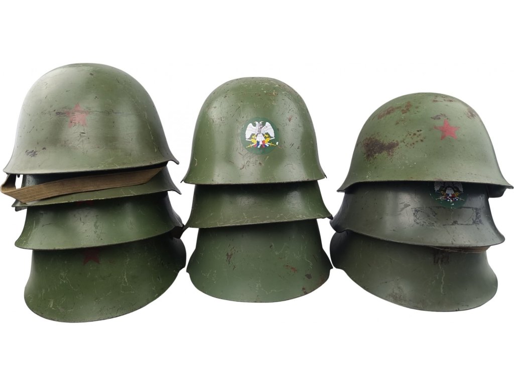Helmy boli aktívne používané počas konfliktov na Balkáne v 90. rokoch. Skvelý zberateľský kus z východoeurópskej vojenskej histórie .