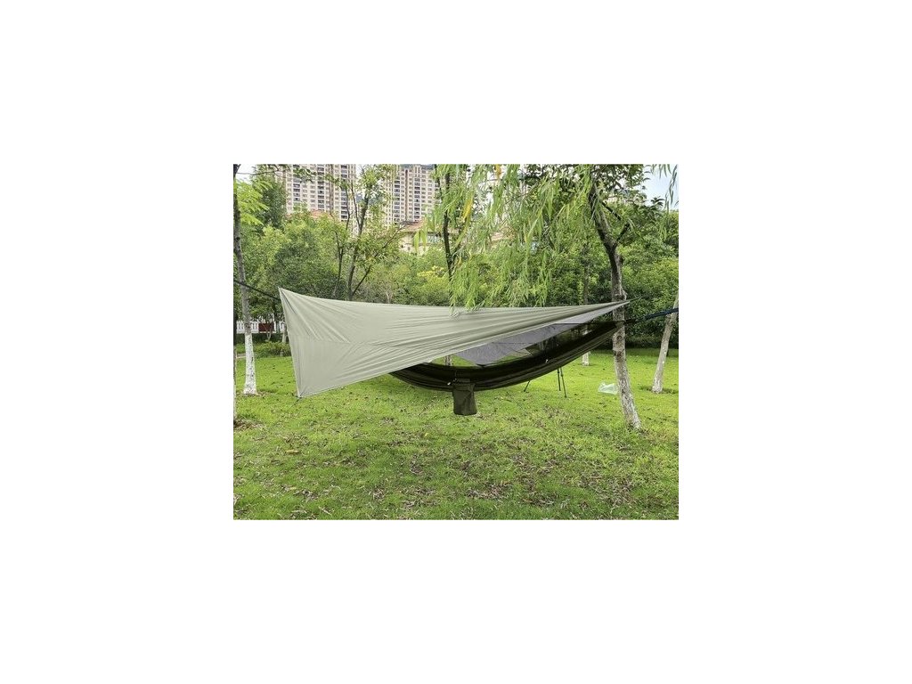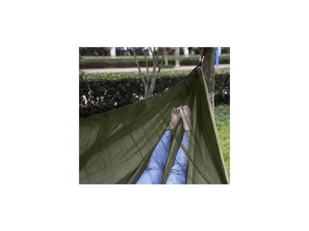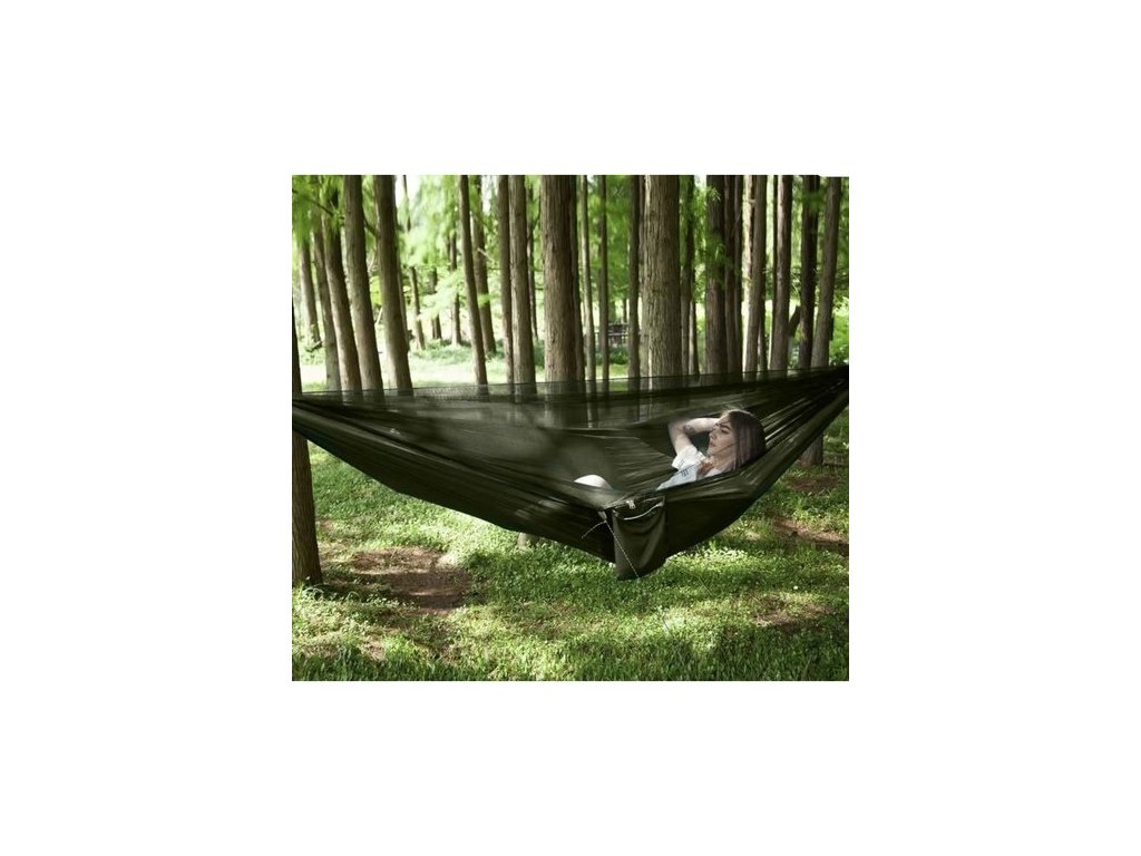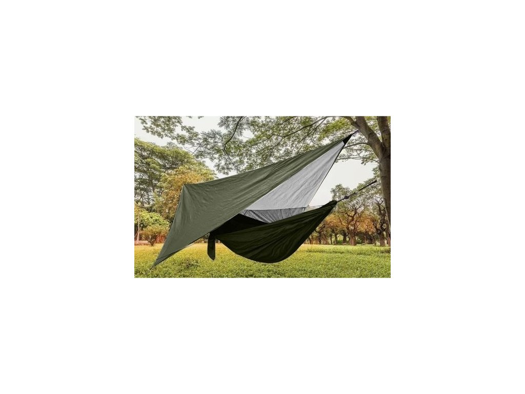 Turistická hojdacia sieť s moskytiérou a nepremokavou plachtou (strieškou), prežitie na kempovanie a bushcraft, pre dve osoby, veľmi odolná - maximálna nosnosť je 250 kg!