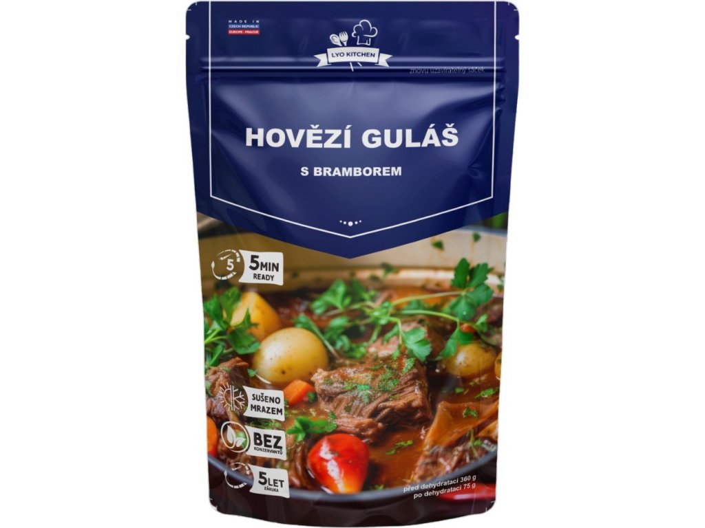 Hovädzí guláš so zemiakmi FDC mrazom sušené Lyo