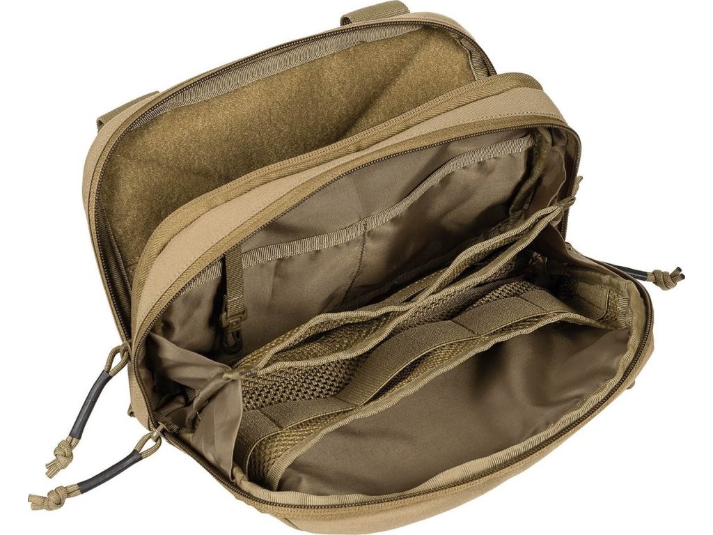- Predná strana s vreckom na zips a zasúvacím vreckom so suchým zipsom a pútkami MOLLE na vonkajšej strane.