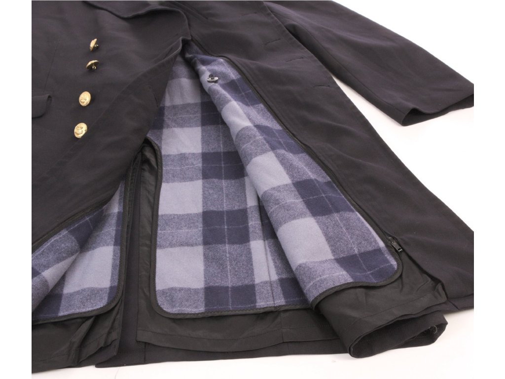 Vnútorná odopínateľná podšívka je s kabátom spojená zipsom, a je možné ju v prípade potreby vybrať. Je vyrobená z 90% panenskej vlny a 10% polyamidu.