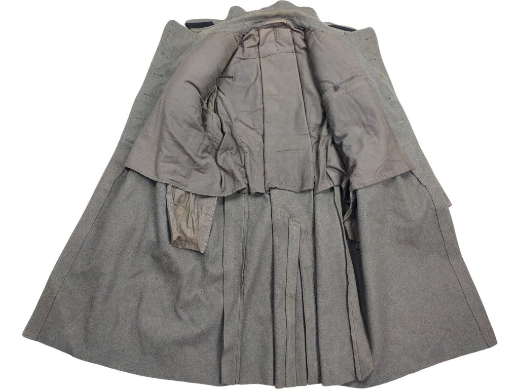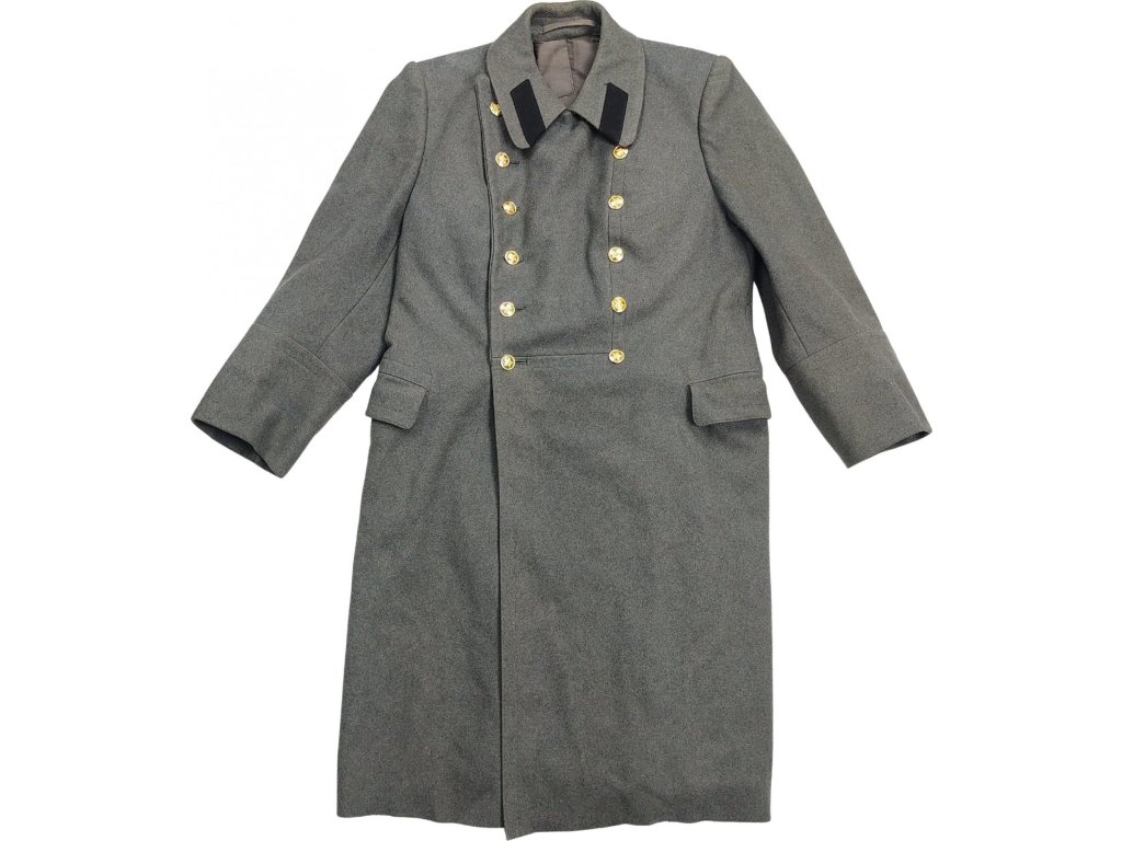 Dôstojnícky kabát ženijného vojska sovietskej armády, vyrobený z poctivej a hutnej 100% vlny tmavo šedej farby. Dvojradové zapínanie na zlatisté gombíky, ktoré sú typicky zdobené päťcípou hviezdou s kladivom a kosákom.