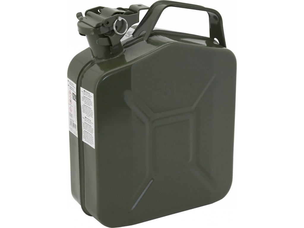 - kovový kanister na pohonné hmoty s objemom 5 litrov