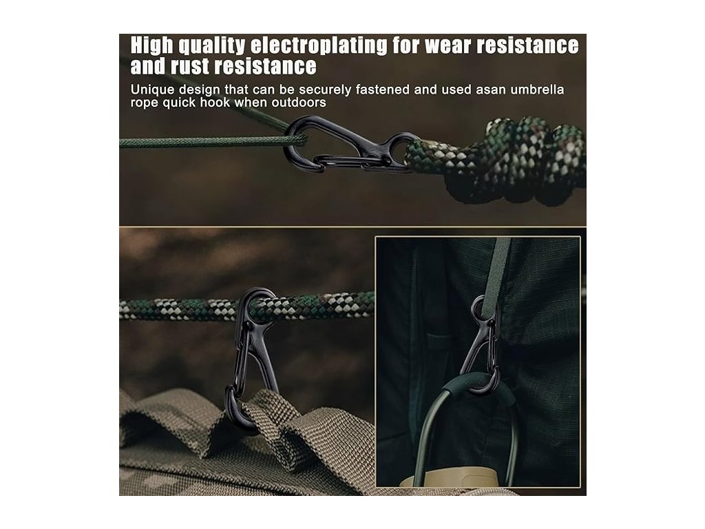- Mini veľkosť je ideálna vychytávka na zavesenie kľúčov, príveskov, fliaš s vodou, malých svietidiel, píšťaliek, povrazov, reťazí, plachiet atď.