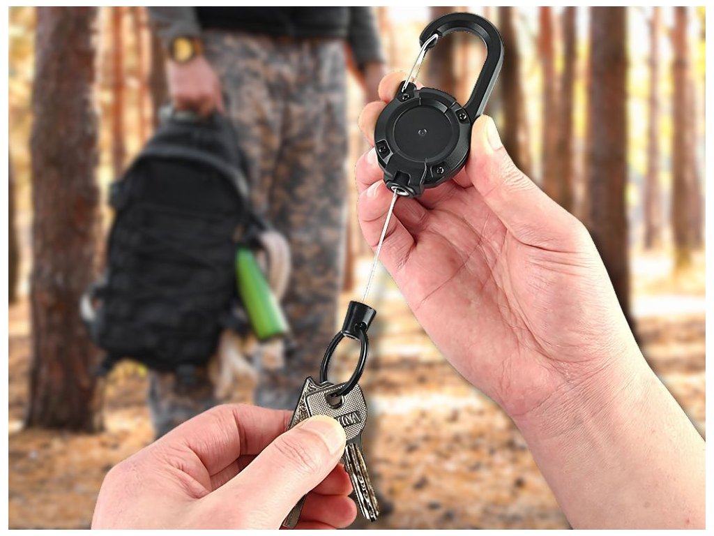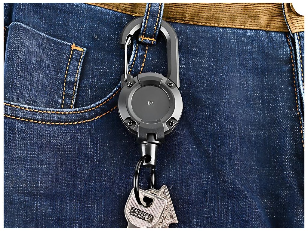 - KEY RING RETRACTOR ROPE WITH BELT CARABINER RETRACTOR.
