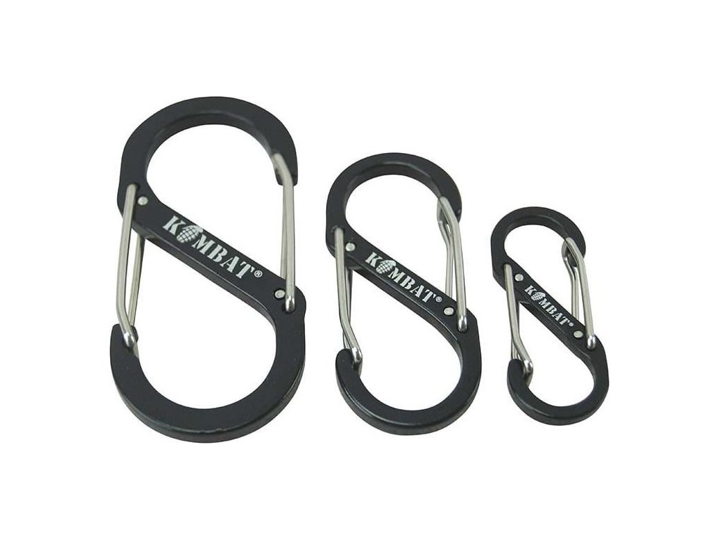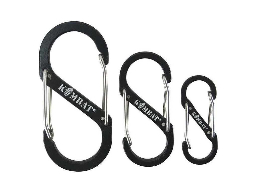 Viacúčelová sada troch rôzne veľkých karabín Kombat UK S-Biner.
