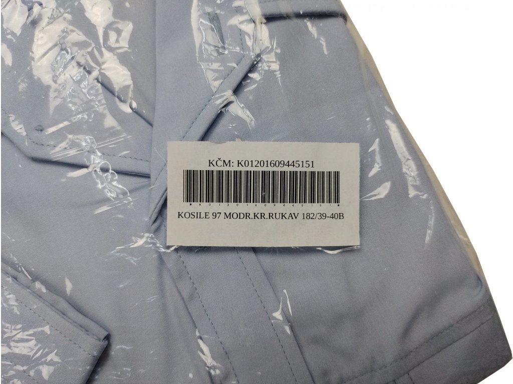 - Strih: Krátke rukávy s manžetami na gombíky, zapínanie na gombíky po celej dĺžke, dve náprsné vrecká s chlopňou na gombík.