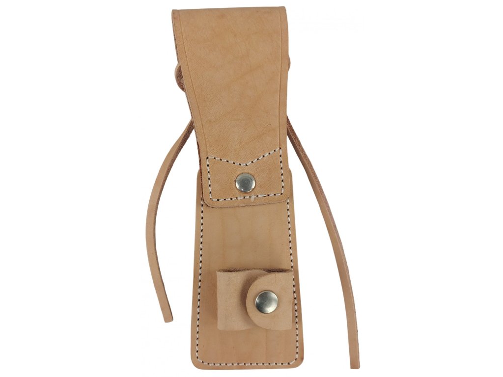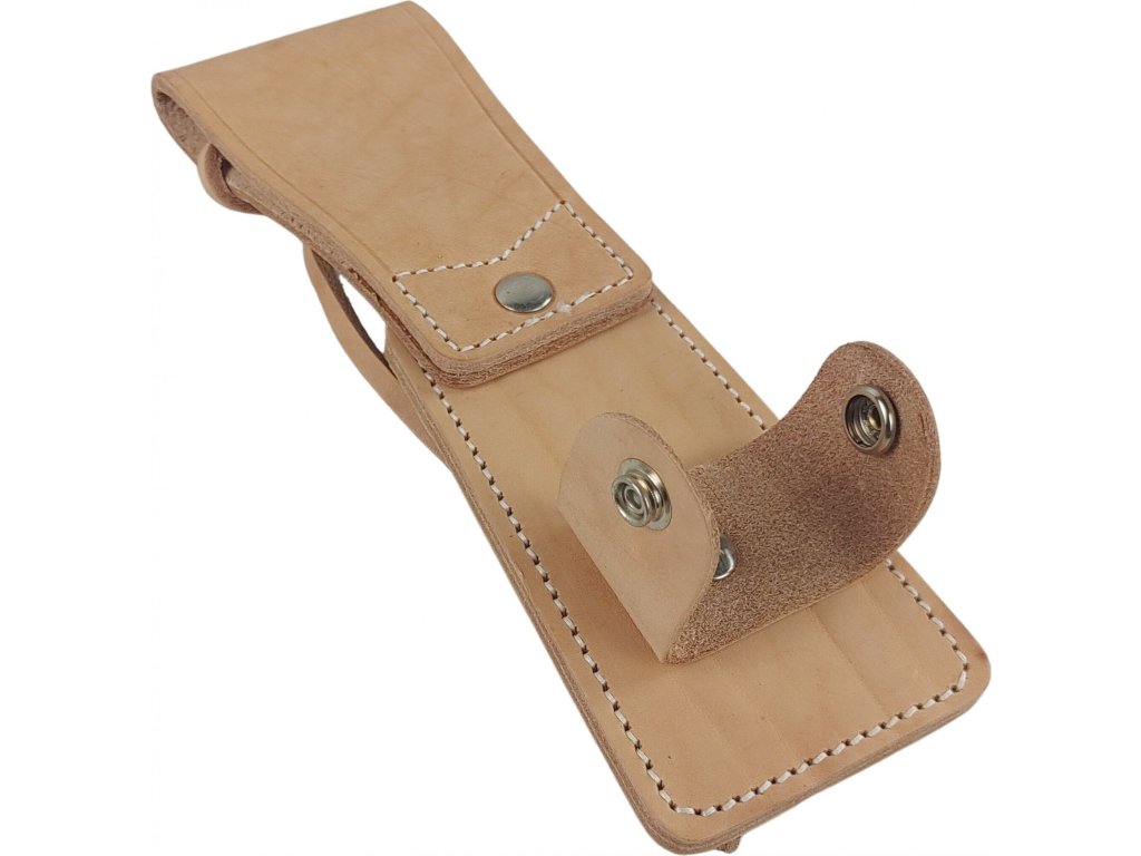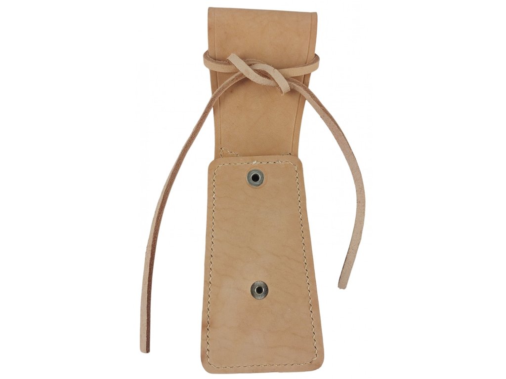 - Poctivo prešívaná konštrukcia puzdra zo silnej hovädzej kože prírodnej farby, čo zaisťuje odolnosť a trvanlivosť.