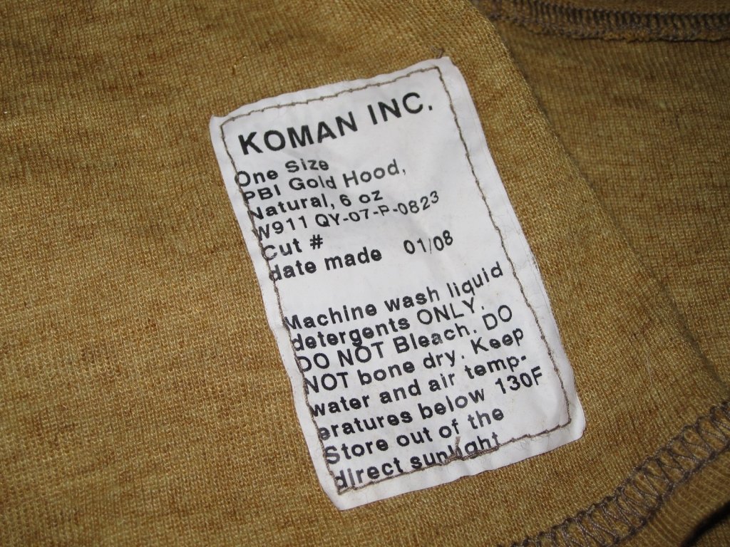 - KOMAN INC. One Size PBI Gold Hood, Natural, 6 oz / W911 QR-07-P-0393.