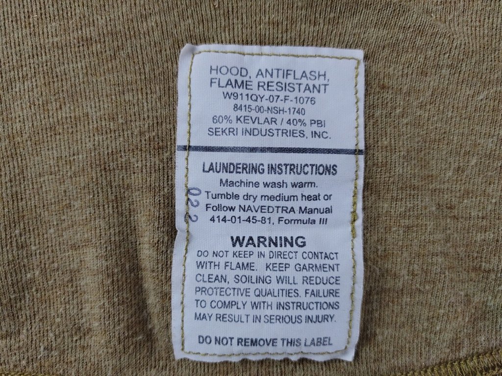 - SEKRI INDUSTRIES, INC. HOOD, ANTIFLASH, FLAME RESISTANT W911QY-07-F-1076