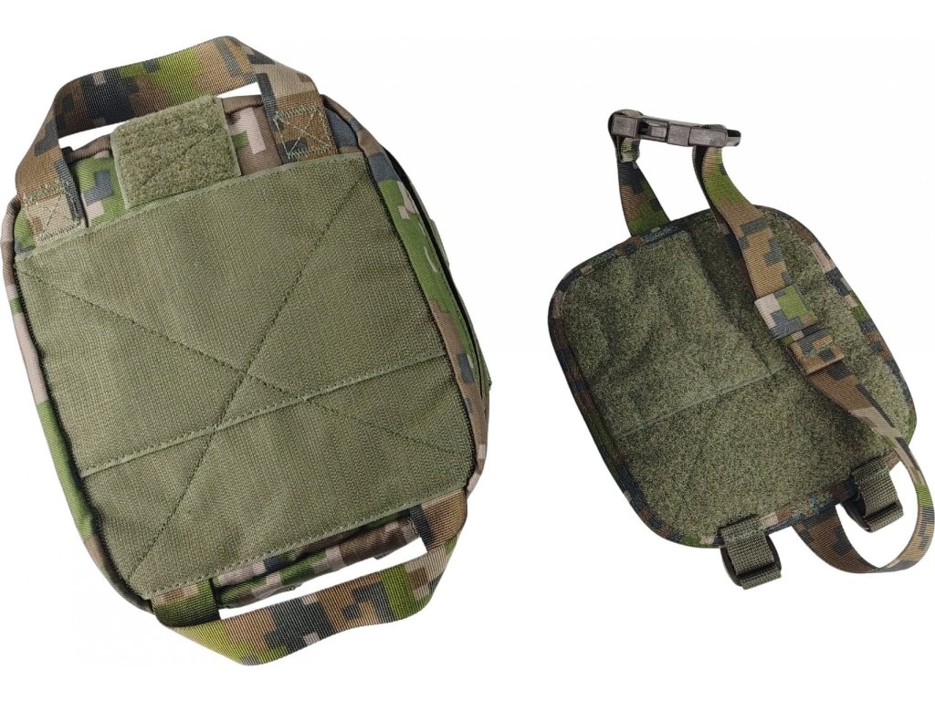 - Vyrobené v Českej republike z pevného a odolného nepremokavého materiálu s RipStopovou úpravou v slovenskom armádnom maskovaní vzoru 2007 (Vz.2007 Digi les), a to vrátane popruhov.