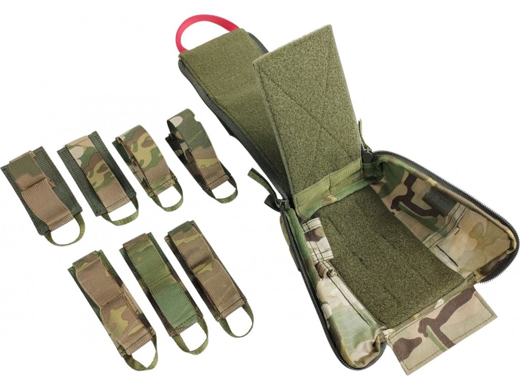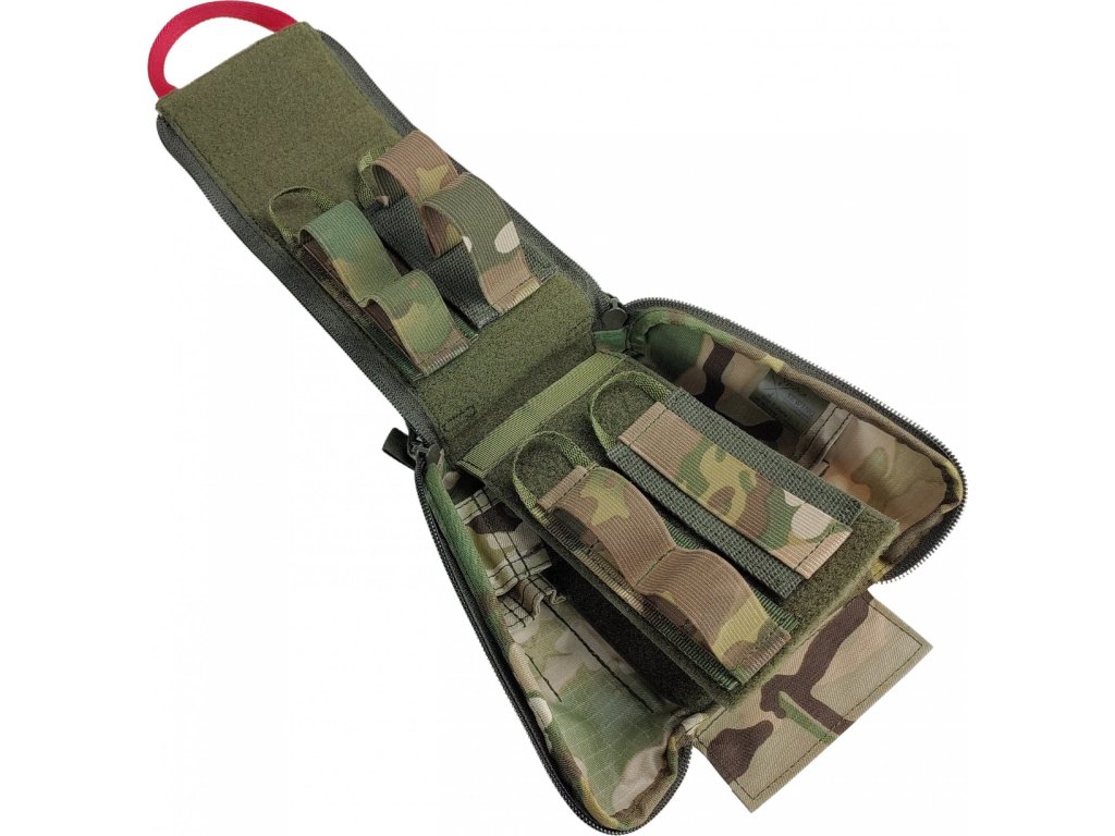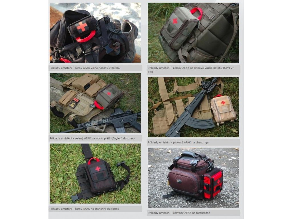 - Ide o taktickú lekárničku určenú na poskytnutie prvej pomoci v teréne, najmä na vojenské alebo outdoorové účely.