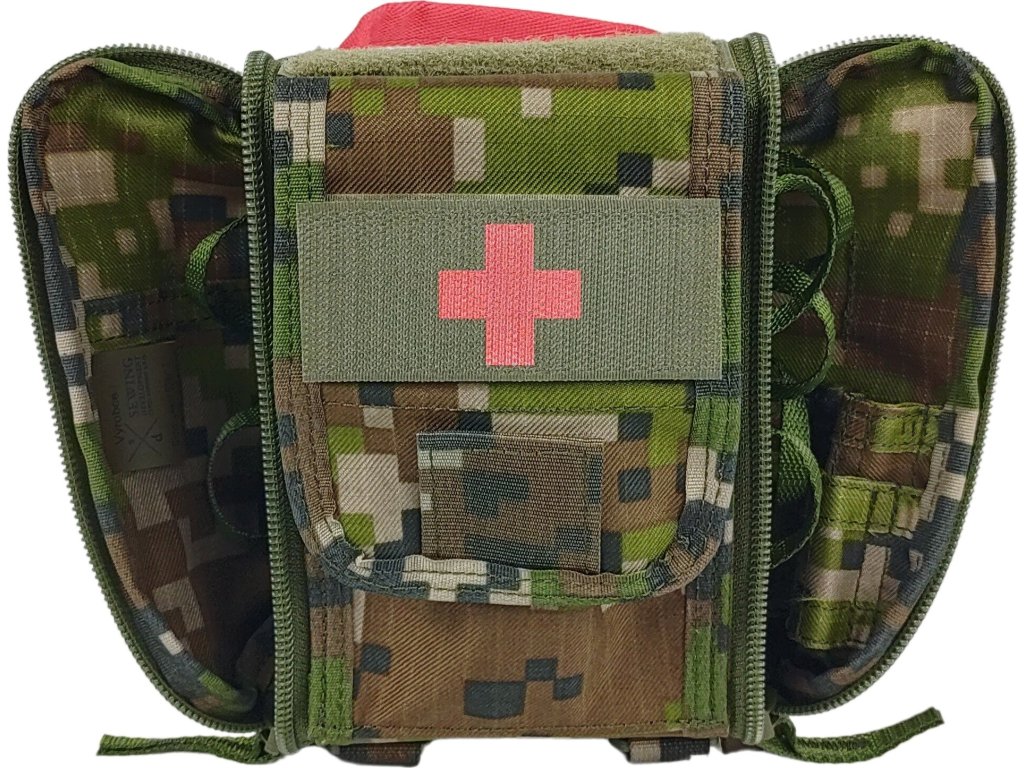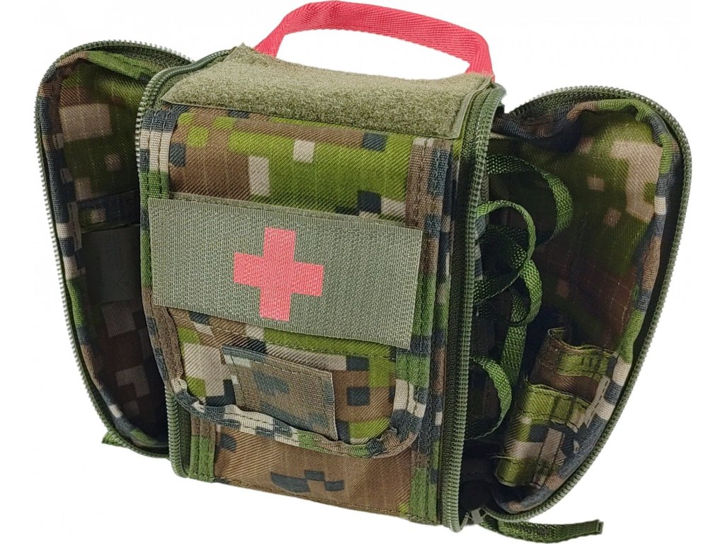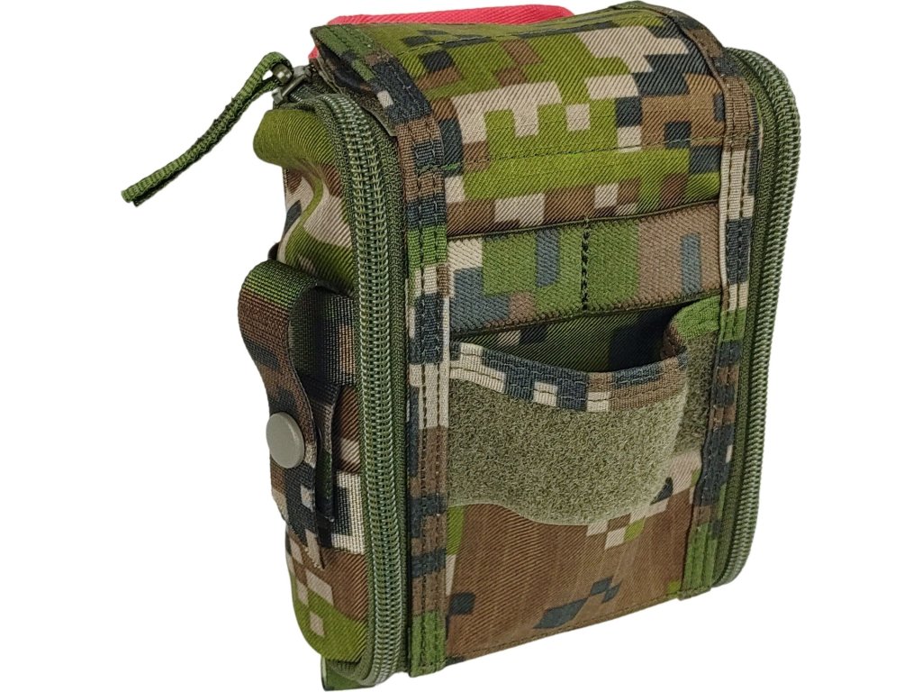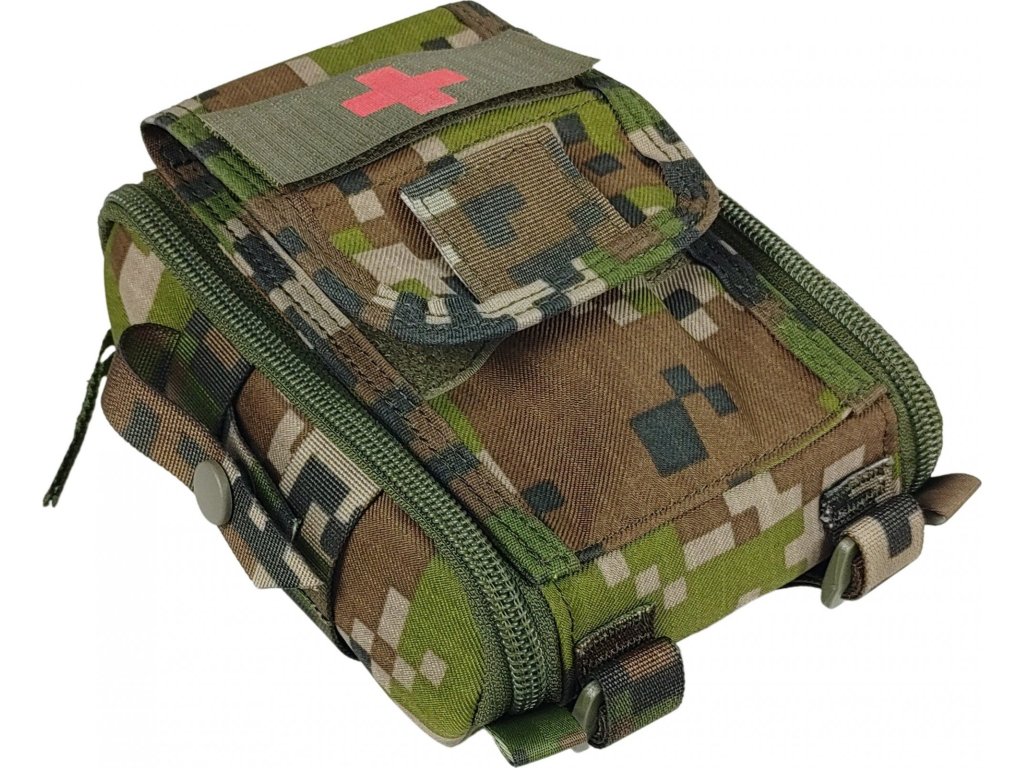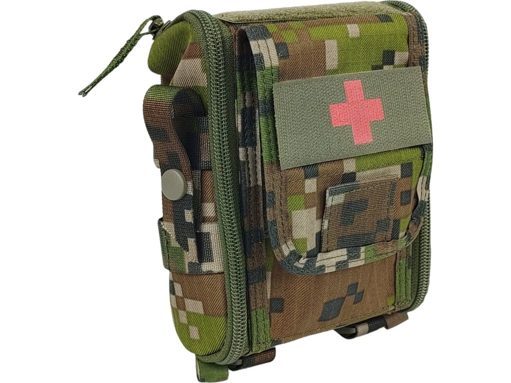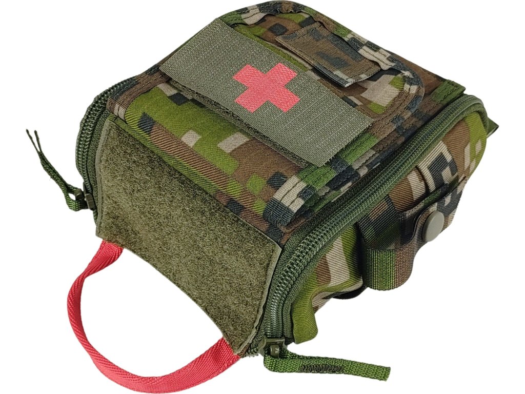 - Ide o taktickú lekárničku určenú na poskytnutie prvej pomoci v teréne, najmä na vojenské alebo outdoorové účely.