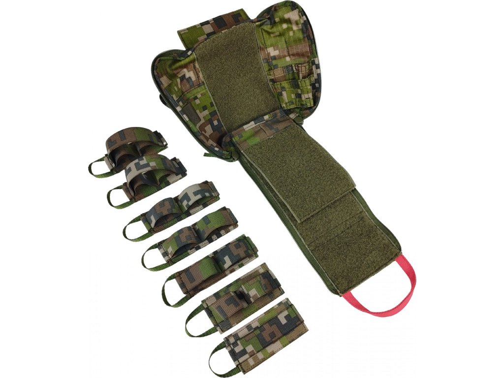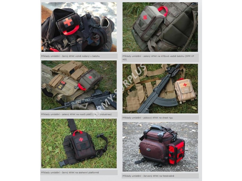 - Zdravotná sada obsahuje nasledujúce: Puzdro AFAK, 7 kusov vnútorných úchytov rôznych veľkostí na suchý zips, označenie (zdravotný červený kríž na suchom zipse).