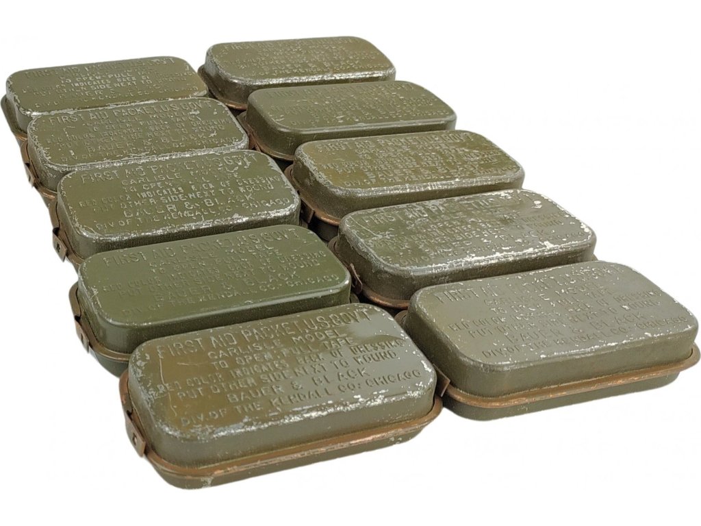 - Originálna vojenská osobná plechová lekárnička - individuálny zdravotný obväz prvej pomoci jednotlivca.