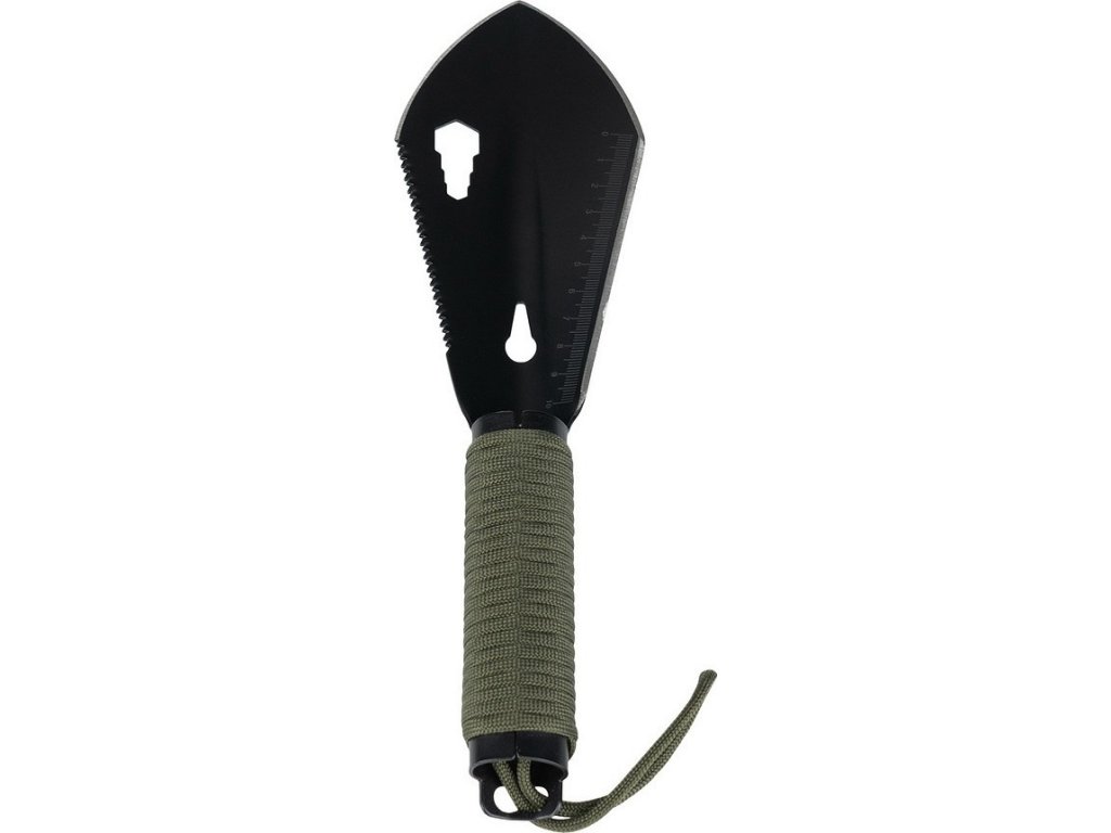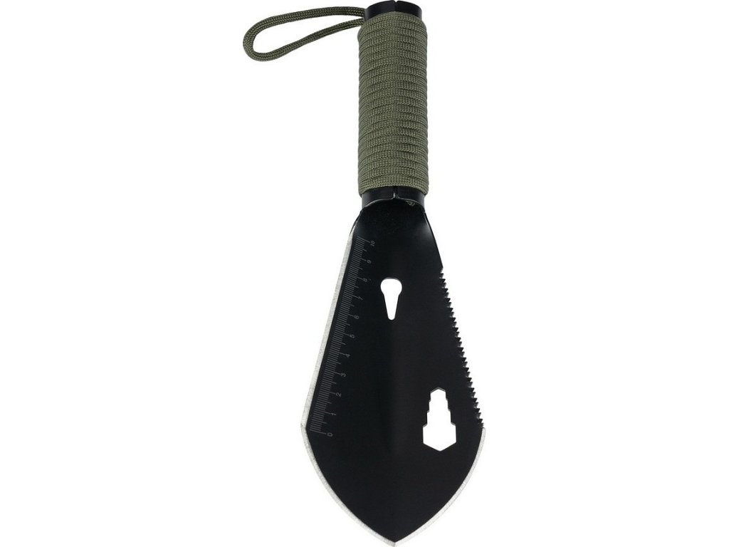 Táto multifunkčná, kompaktná lopata je ideálnym nástrojom pre outdoorové dobrodružstvá. Vďaka viac ako 7 funkciám je veľmi všestranná. Medzi funkcie patrí: nôž, vyťahovač klincov, lopata, pravítko, píla a kľúč. Lopata je vyrobená z vysoko kvalitnej nerezovej ocele (HRC 42-46). K rukoväti je pripevnená 2-metrová padáková šnúra Paracord, ktorá sa môže veľmi hodiť v núdzových situáciách. Produkt je dodávaný s praktickým pútkom na zápästie a nylonovým puzdrom.
