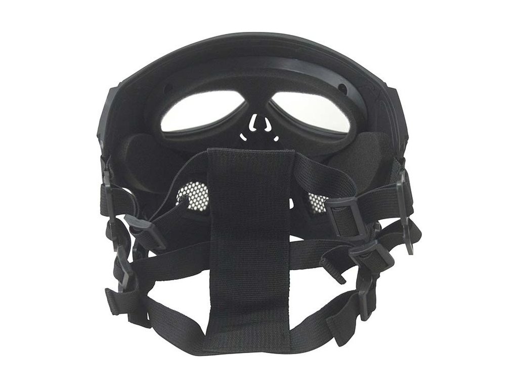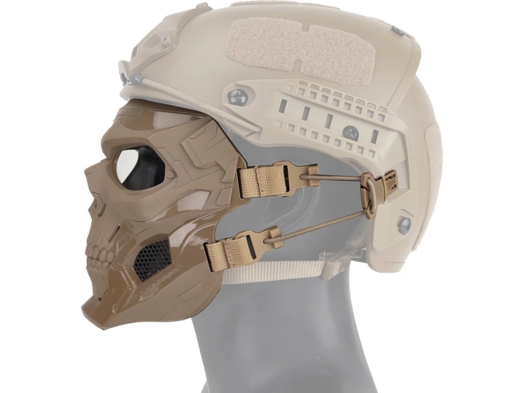 Táto štýlová maska s lebkou má taktický vzhľad a možnosť uchytenia popruhu, aby bola kompatibilná s taktickými helmami alebo bez nich.