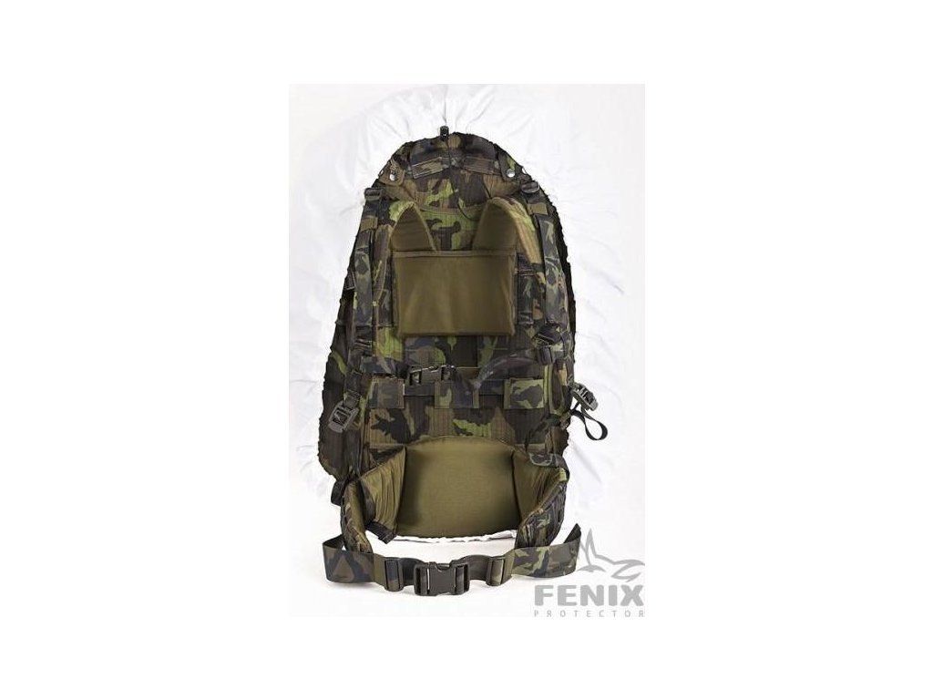 - Prevlek zaistíme na batohu dotiahnutím samosvorky na obvodovej šnúre. Prevlek je určený na maskovanie tlmoku s pripojenými bočnými vreckami aj bez nich.
