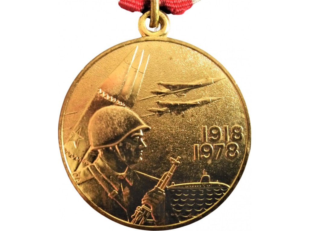 Na líci medaily na pozadí rakiet smerujúcich nahor a lietajúcich bojových lietadiel je obraz vojaka sovietskej armády s guľometom. Napravo od postavy vojaka na morskom obzore je ponorka, nad ktorou sú dáta „1918“ a „1978“ umiestnené v dvoch radoch.