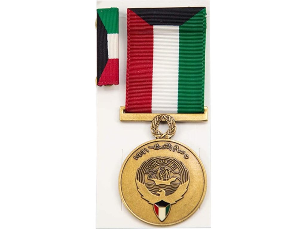 Medaila: Bronzová medaila so smaltom, s priemerom 1 9/16 palca (40 mm) zavesená na tyči vencom. Avers nesie štátny znak štátu Kuvajt. Erb sa skladá zo štítu vo farebnom prevedení vlajky prekrývajúceho sokola so zobrazenými krídlami. Sokol podopiera disk obsahujúci plachetnicu s celým menom štátu napísaným v hornej časti disku. V hornej časti medaily je arabským písmom nápis "1991 LIBERATION MEDAL". Na zadnej strane je mapa Kuvajtu na lúčovitom pozadí.