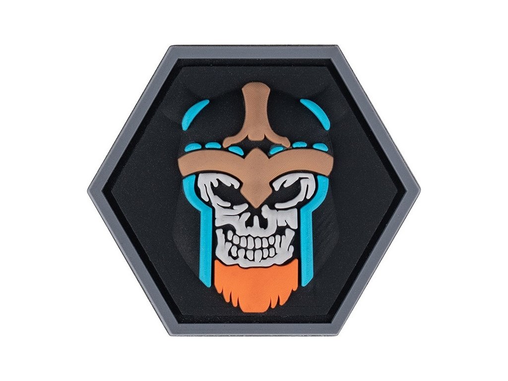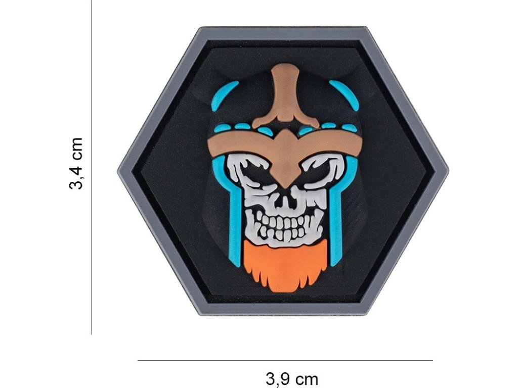 Nášivka plastová na suchý zips 3D PVC VELCRO - Lebka viking šesťuholníková 101. INC